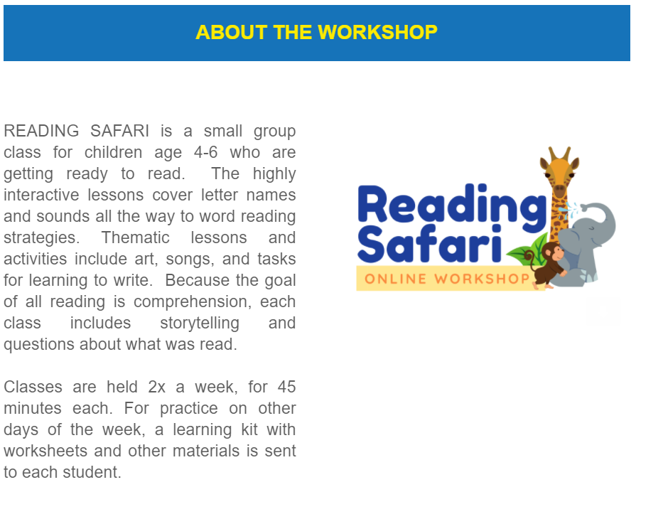 We teach not just reading, but how to love reading. This online class for children getting ready to read ensures sound fundamentals and appreciation of a good story.